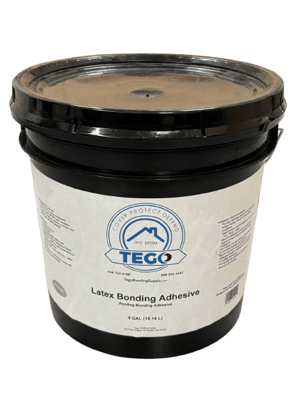 This is latex bonding adhesive to adhere the EPDM or TPO rubber to the roofing insulation or substrate. This is a latex based single surface bonding adhesive. This is a BONDING Adhesive to adhere or bond the EPDM or TPO to a substrate of wood, plywood, OSB or metal. This is NOT a seaming product that will seam EPDM to EPDM or TPO to TPO, you must use a SEAMING product like black seaming adhesive or vulcanizing seaming tape which we have available for that type of application. Coverage for a 4 gallon is about 350 – 400 sq. ft. per pail. This adhesive is a SINGLE surface laminate adhesive that is NOT to be used in a WET condition. Please allow time for the adhesive to become “tacky” which usually occurs in about 5 minutes or so. DO NOT ALLOW the adhesive to become dry before you lay in the roofing membrane. APPLY roofing membrane while the adhesive is Tacky NOT WET. It also must be applied with a 1/8″ trowel. If you choose to roll on it should be applied to both the surface and the EPDM or TPO and would require extra adhesive.